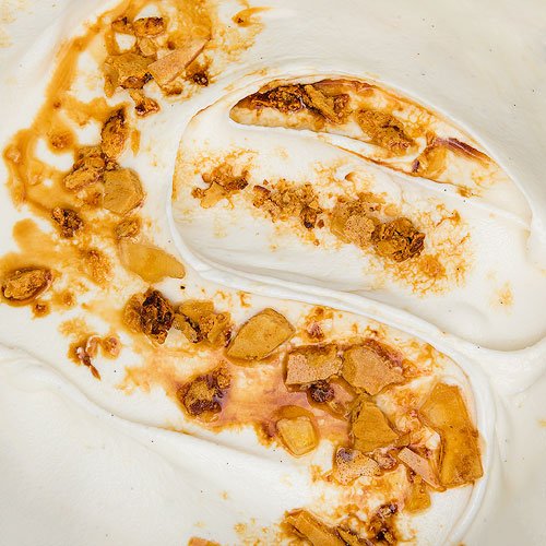 Hokey Pokey is New Zealand's most popular ice cream flavor, made with a creamy vanilla base and small pieces of a light, sponge-like candy called honeycomb toffee, which we make in-house. As the candy dissolves into the ice cream, it creates streaks of gooey, caramelized syrup throughout.