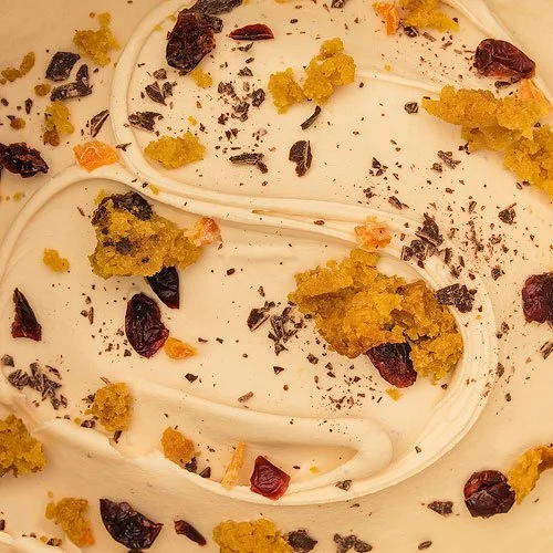 For this festive gelato, we make our own artisanal gluten-free panettone and blend it into a smooth mascarpone cream base, adding candied oranges, cranberries, and chocolate shavings. It's one of our favorite Italian holiday traditions, reimagined as gelato.